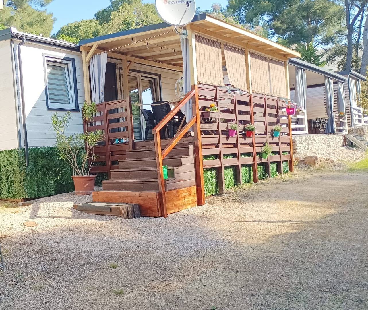 MOBILE HOME *** se nachází v kempu na okraji Biograd na Moru na klidném místě zalesněném borovicemi, které dosahují až k plážím. Do Biogradu se dostanete po promenádě cca 1,5 km